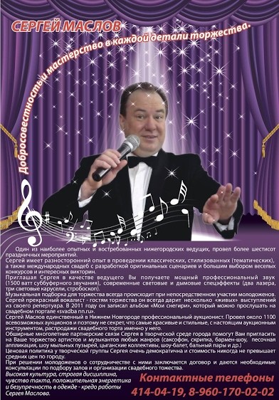 ведущий Cергей Маслов в Нижнем Новгороде: альбом "Портфолио: Свадьба"